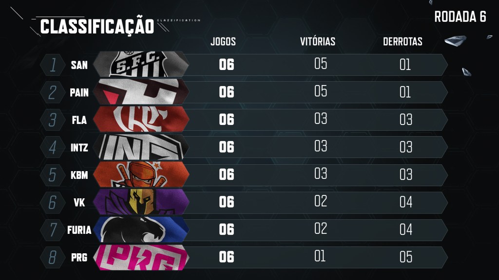 Depois desses resultados, assim ficou a tabela do Campeonato Brasileiro de League of Legends: