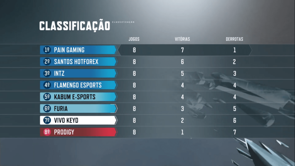 Ao fim da rodada e com os respectivos resultados, assim ficou a tabela do Campeonato Brasileiro de League of Legends: