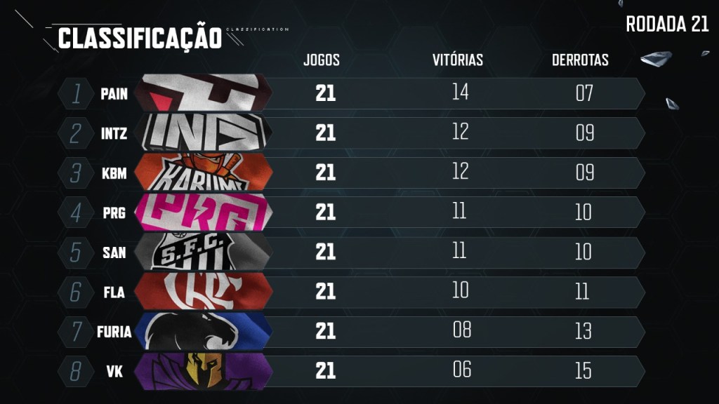 Chegamos ao fim da fase de classificação do CBLOL e conhecemos neste domingo (9) as quatro equipes que disputarão os playoffs; paiN, INTZ, Kabum e Prodigy estão na próxima fase. O dia começou com duas vagas em disputa, e logo no segundo jogo a Kabum garantiu sua classificação antes mesmo do início de seu game. Com a PRG não finalizando o jogo antes dos 29 minutos, os ninjas garantiram o lugar nos playoffs. A emoção ficou por conta da última partida entre Flamengo e Santos, já que a Prodigy, após vencer seu jogo contra a paiN, torceu pela vitória do Santos sobre o Flamengo, que aconteceu no último jogo do dia, deixando o rubro-negro fora de um mata-mata pela primeira vez na sua história.