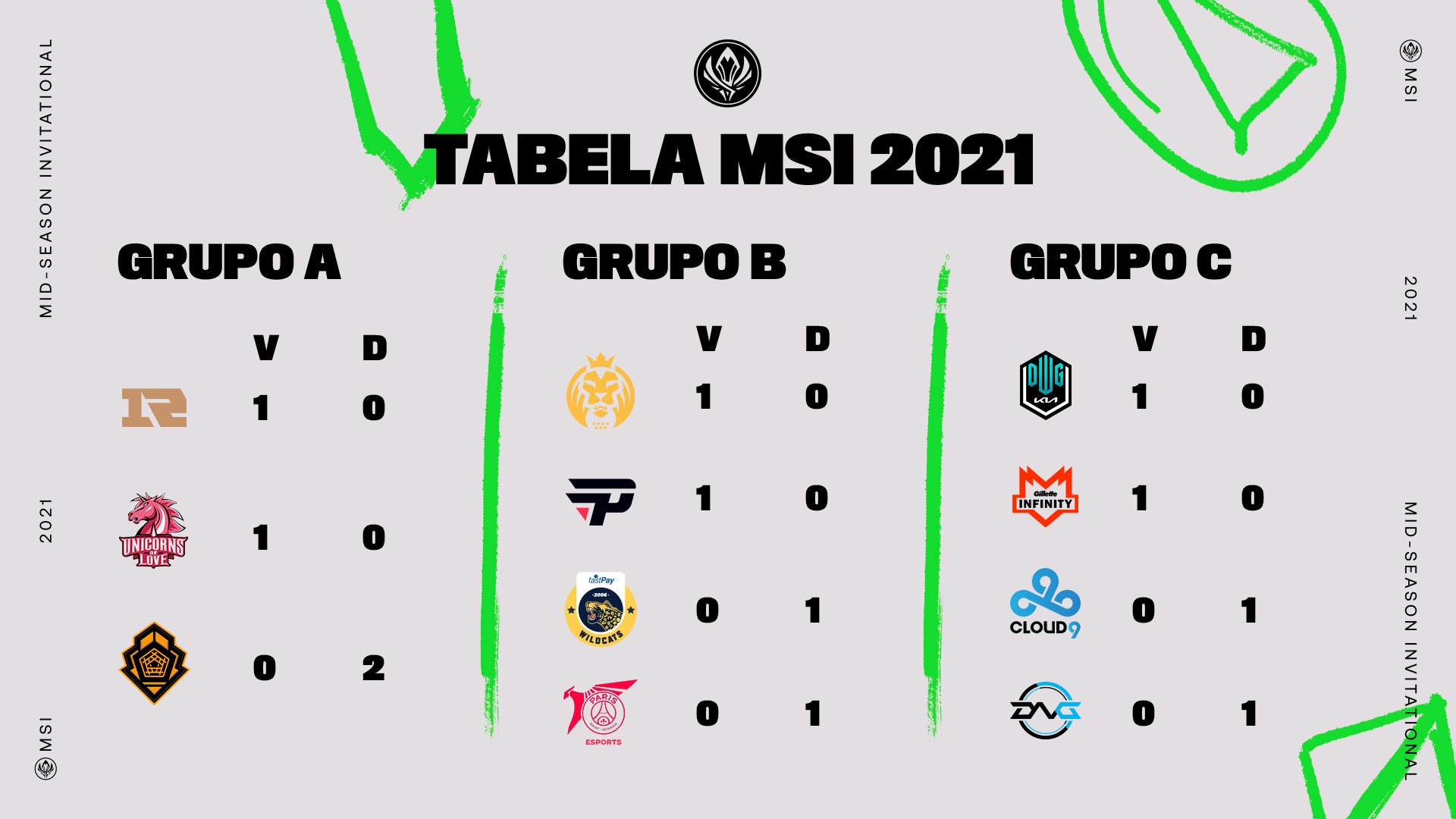 Com estes resultados, assim ficaram as primeiras classificações do MSI 2021: