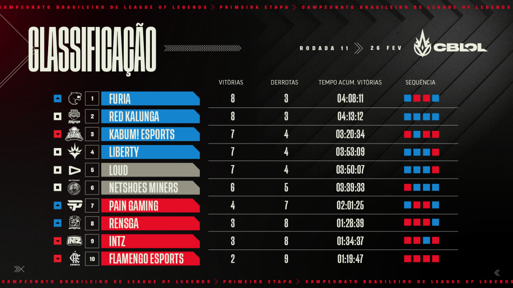 Com os resultados, assim ficou a tabela do CBLoL: